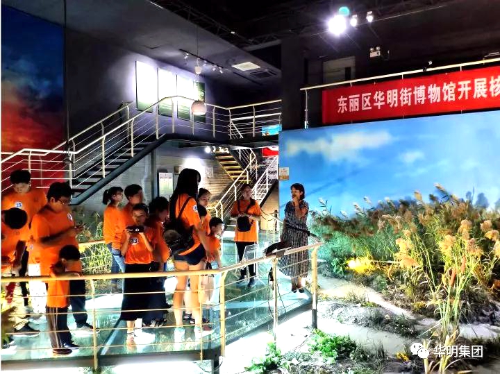 第一站到達(dá)世博華明館后,孩子們有序的跟在講解員的身后,認(rèn)真的聽著講解員的講解,時(shí)不時(shí)問問爸爸媽媽這個(gè)是什么那個(gè)是什么。當(dāng)聽講解員說華明街原來叫荒草坨鄉(xiāng),后來由于咱們?nèi)A明集團(tuán)輝煌發(fā)展,為地方的發(fā)展做出巨大貢獻(xiàn),因此后來就命名為華明街的時(shí)候,一個(gè)個(gè)帶著童真的笑容,自豪地望著自己的爸爸媽媽。