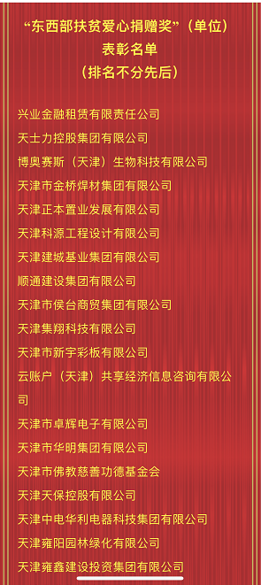 佟潔總經(jīng)理參加了此次表彰大會(huì)。華明集團(tuán)榮獲了“東西部扶貧愛(ài)心捐贈(zèng)獎(jiǎng)”的榮譽(yù)稱號(hào)。華明集團(tuán)在天津發(fā)展的39年來(lái),將產(chǎn)業(yè)發(fā)展和慈善公益事業(yè)逐漸融合為一個(gè)有機(jī)體,以“四海同心”為精神攜領(lǐng),以“傳承和光大中華民族傳統(tǒng)美德”為己任,秉承“取之社會(huì),用之社會(huì)”的公益理念,長(zhǎng)期支持公益事業(yè)建設(shè),逐漸形成以捐建希望小學(xué)暨發(fā)起希望教師工程、參與慈善萬(wàn)人行、支持華文教育、推動(dòng)參與精準(zhǔn)扶貧工作等為主體的慈善公益體系項(xiàng)目,捐資總額近400萬(wàn)元。