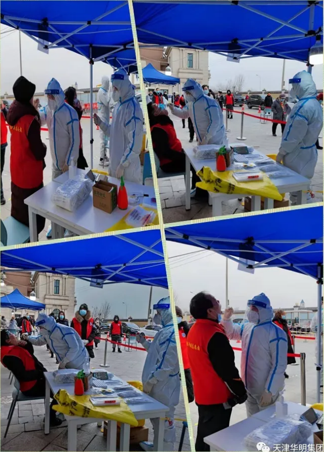 核酸采集工作持續(xù)到深夜,雖然我們支援的醫(yī)護人員年齡已過花甲,但我們堅決完成了此次東麗大篩的任務。面對疫情,華明集團向每一位在一線默默奮戰(zhàn)的醫(yī)護人員、社區(qū)工作者、志愿者和各衛(wèi)生部門工作者致敬:“您們辛苦了。天津加油!”