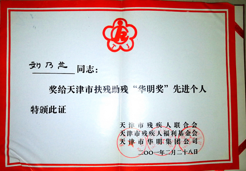 天津市扶殘助殘“華明獎(jiǎng)”先進(jìn)個(gè)人