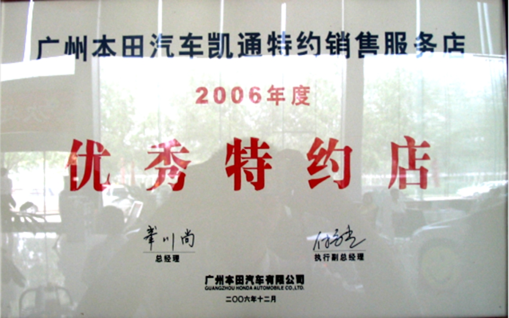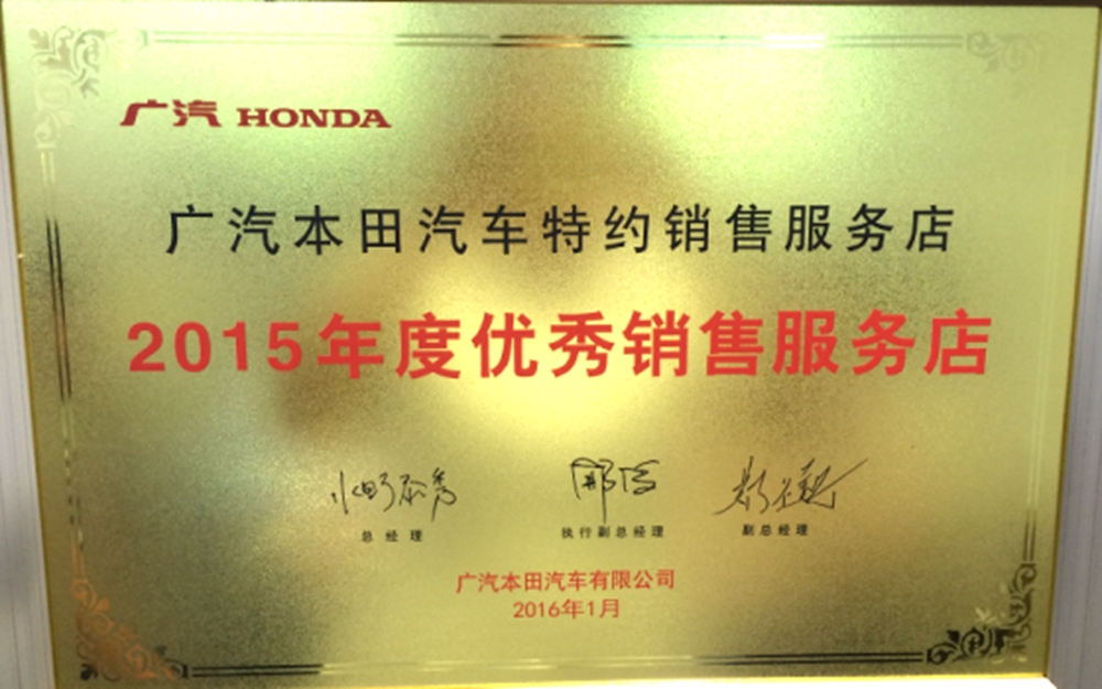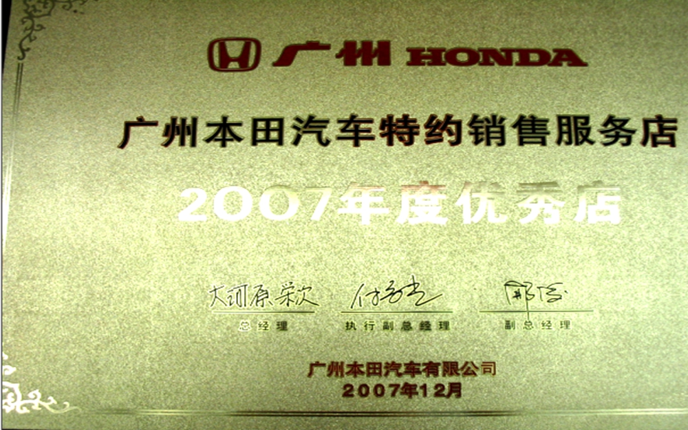 我公司汽車銷售實行一站式服務(wù)。從選車、購車、上牌、保險到二手車評估置換一站式完成。我店為天津地區(qū)首家廣汽本田喜悅二手車特約店,天津地區(qū)首家廣汽本田綠色特約店,天津地區(qū)唯一一家授權(quán)維修本田高端品牌“謳歌”的廣汽本田特約店。并于06、07、08連續(xù)三年獲得廣汽本田最高榮譽“優(yōu)秀服務(wù)店”稱號,成為天津地區(qū)唯一一家連續(xù)3年獲此殊榮的特約店。各項指標(biāo)在全國600余家廣汽本田特約店中名列前茅。