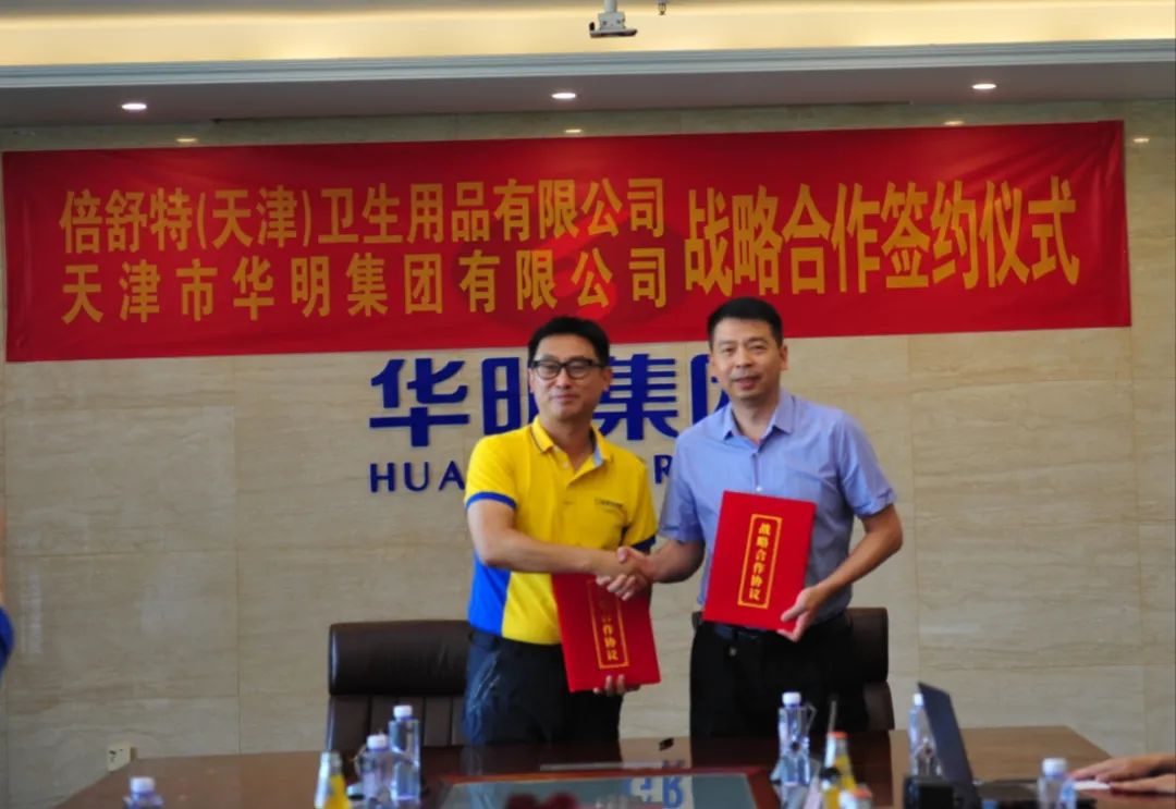 2023年6月26日,天津包裝行業(yè)領(lǐng)軍企業(yè)天津市華明集團有限公司與健康護理產(chǎn)品的創(chuàng)造者和健康護理文化的傳播者的倍舒特(天津)衛(wèi)生用品有限公司舉行了戰(zhàn)略合作簽約儀式,攜手共進,強強聯(lián)合,共享發(fā)展!