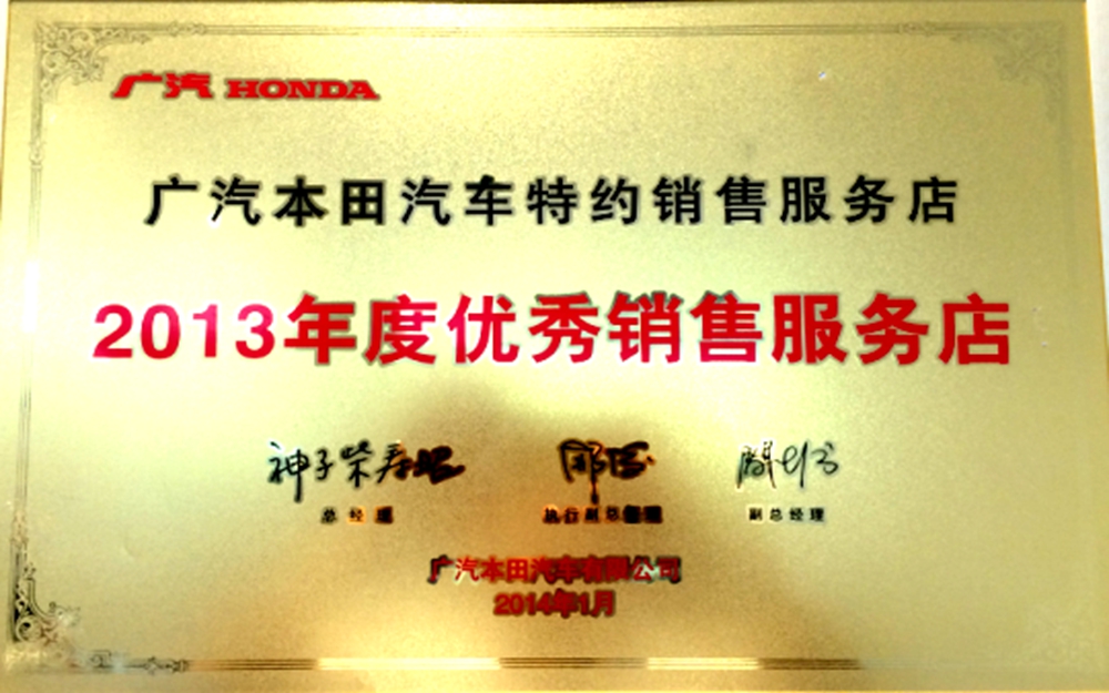 我公司汽車銷售實行一站式服務(wù)。從選車、購車、上牌、保險到二手車評估置換一站式完成。我店為天津地區(qū)首家廣汽本田喜悅二手車特約店,天津地區(qū)首家廣汽本田綠色特約店,天津地區(qū)唯一一家授權(quán)維修本田高端品牌“謳歌”的廣汽本田特約店。并于06、07、08連續(xù)三年獲得廣汽本田最高榮譽“優(yōu)秀服務(wù)店”稱號,成為天津地區(qū)唯一一家連續(xù)3年獲此殊榮的特約店。各項指標(biāo)在全國600余家廣汽本田特約店中名列前茅。